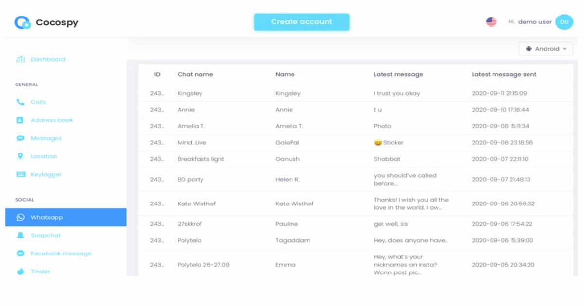 If you want to monitor your kid’s Google phone, you’ll be able to read their conversations on Messenger, Snapchat, Instagram, Tumblr, Kik, Telegram, WeChat, Line, and more. There’s even support for Tinder.