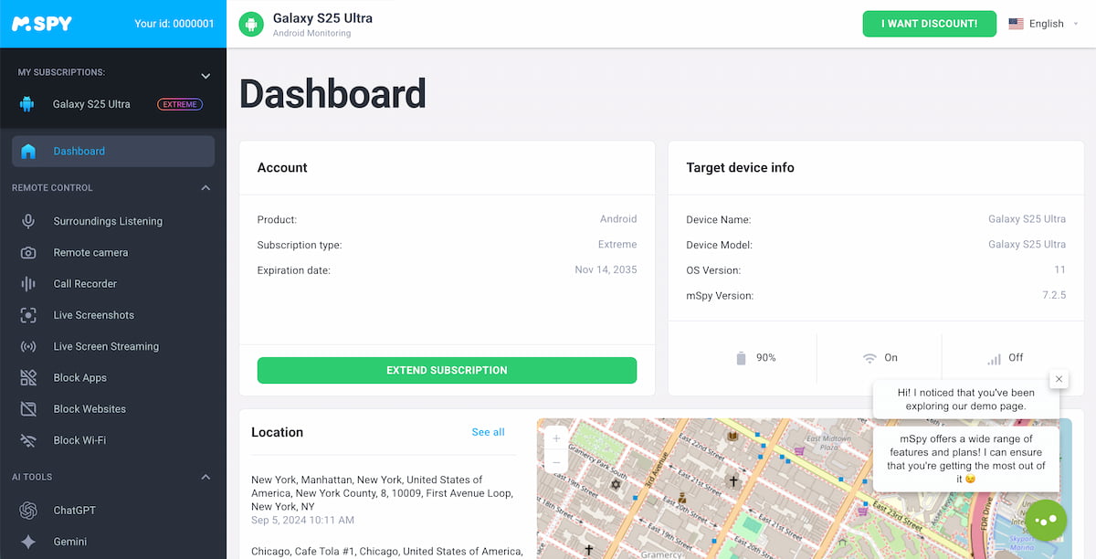 With mobile messaging app support, you’ll have the power to read their Facebook Messenger messages, WhatsApp conversations, iMessage chats, and so much more. You’ll also have a powerful GPS tracker at your disposal, so you won’t need to rely on the Find My app, which often proves to be less accurate (if you’ve seen those giant 3-mile zones, you know what we’re talking about).