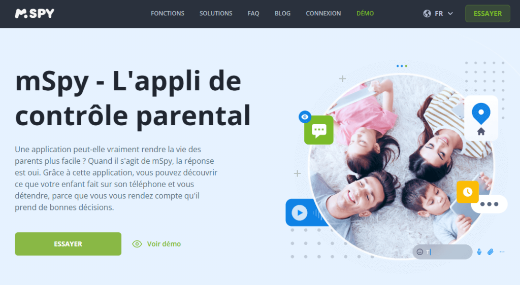 La plateforme mSpy a été créée 2010, pour aider les parents à protéger leurs enfants et assurer leur sécurité en ligne. Cette application de contrôle parental propose une assistance client permanente. Avec mSpy, les enfants ne se doutent de rien. Surveillez les chats privés sur des réseaux sociaux comme WhatsApp, Facebook, Instagram ou Telegram.