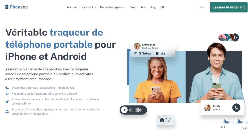Phonsee est disponible pour tous les appareils Android et iOS, il fonctionne sans être détecté sur le téléphone cible. Le service client est disponible 24 h/24, 7 j/7, avec un processus d’installation rapide. Cette appli de contrôle parental permet de consulter l’historique de géolocalisation et de définir des limites de sécurité de la cible. Le parent peut :
