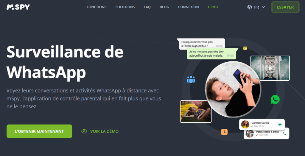 Parmi ces logiciels, on trouve l’application optimale mSpy, actuellement la meilleure application de surveillance disponible sur le marché pour surveiller les messages WhatsApp de vos enfants. D’ailleurs, nous tenons à souligner encore une fois que l’application mSpy n’est destinée qu’au contrôle parental des jeunes.