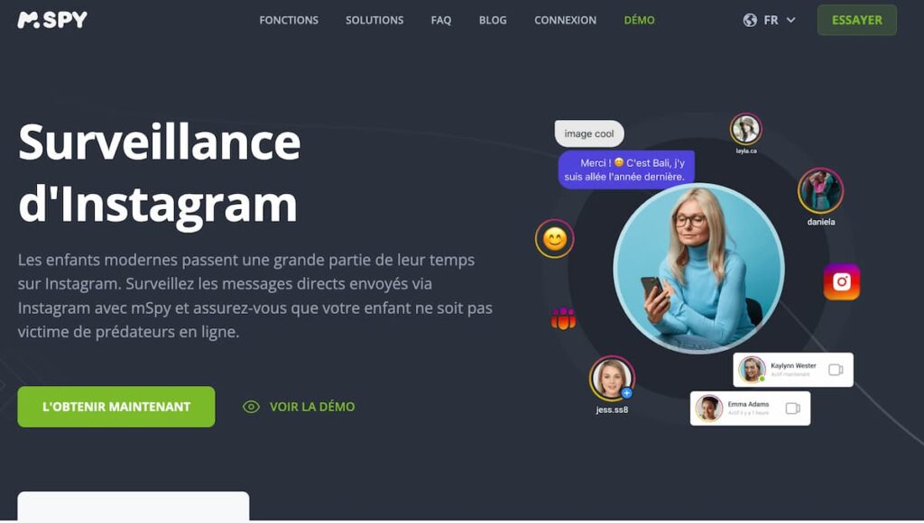 Parmi les options les plus complètes, il y a mSpy. Ce logiciel fonctionne en arrière-plan sur un téléphone et capture tout ce qui s’y passe, y compris sur Instagram. Vous voyez les messages, même ceux qui ont été effacés.