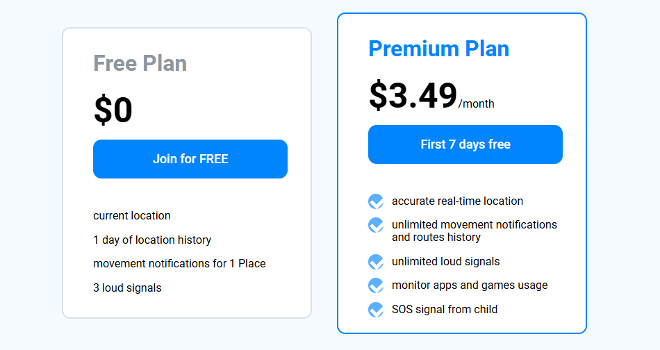 Find my kids abonament de bază oferă funcții esențiale de localizare și monitorizare simplă. Planurile premium includ funcții avansate precum monitorizarea rețelelor sociale și rapoarte detaliate de activitate.
